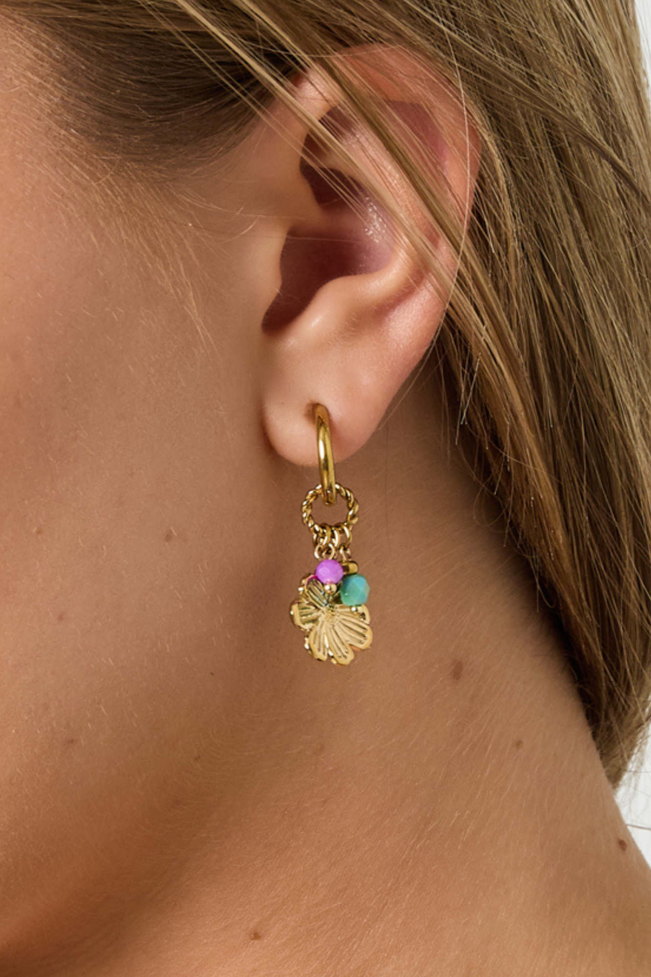 Girls just wanna shine! Deze speelse oorringen met een bloemetje en verschillende kraaltjes geven jouw look meteen een vrolijke, zomerse uitstraling. De combinatie van kleuren en details zorgt voor een subtiele sparkle bij elke beweging.